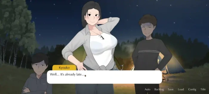 Camp With Mom has a typical Visual Novel gameplay, based on making choices in dialogue and situations. These decisions directly affect the development of the story and the level of intimacy between the characters. The game’s graphics are designed to be attractive, highlighting the relaxing yet mysterious camping scene.