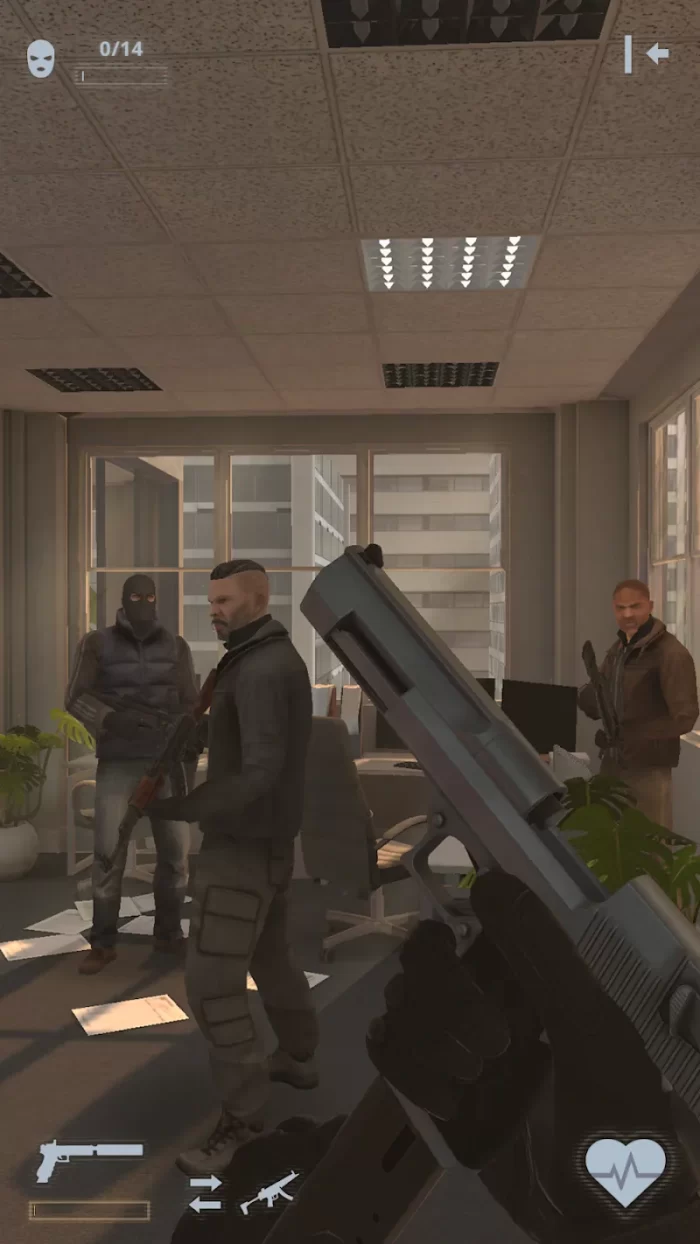 SWAT Shooter Police Action FPS constantly innovates the player experience with a series of attractive modes such as sniper, night stealth, shooting from helicopters or car chases. Each mode brings a different sense of action, requiring precise shooting skills and flexible adaptation. The campaign mission system is divided into areas in the city, from high-rise rooftops to underground criminal dens, creating a feeling of open space combat and breathtaking suspense.